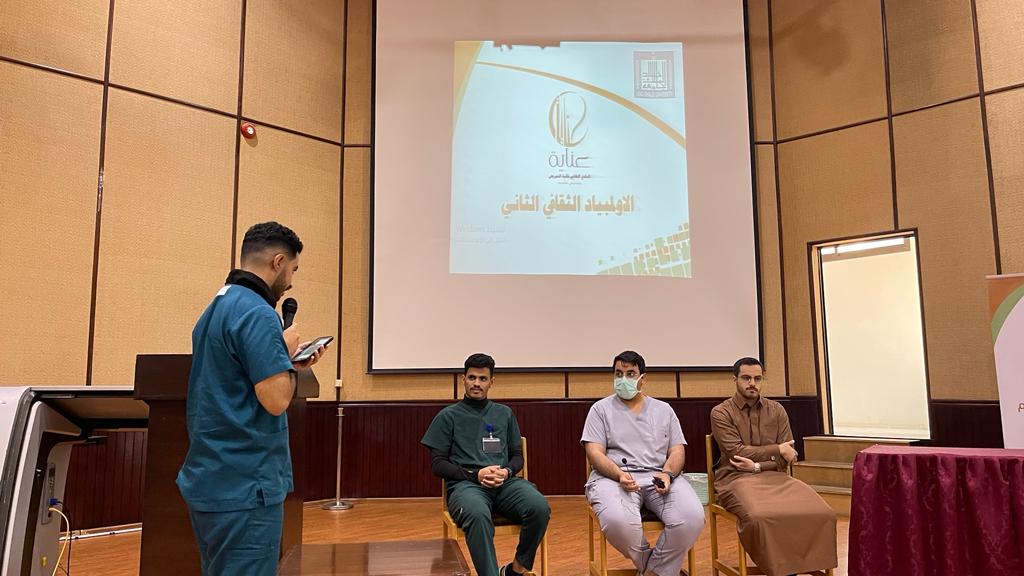 بحضور سعادة عميد كلية التمريض بخميس مشيط الدكتور مشيعل العلياني ، اقام النادي الطلابي بكلية التمريض الاولمبياد الثقافي الثاني وذلك يوم الاحد الموافق ٢١/٤/١٤٤٥ هـ في مسرح الكلية بلعصان. وهدفت هذه الفعاليه الى اكتشاف مواهب طلبة الكلية و تجهيز الطلبة الموهوبين للاولمبياد الثقافي التاسع والذي يقام على مستوى الجامعة. وشملت الاولمبياد الثقافي عشر مجالات تنافسية وهي كالتالي ( حفظ القران الكريم ، اعذب تلاوة ، الحديث الشريف، الالقاء ، الشعر النبطي، اشرح ، الخدمة المجتمعية، المسابقة الثقافية، ٦٠ ثانيه ، التصوير الضوئي ). وفي نهاية الاولمبياد تم تكريم الطلاب الفائزين في كل مجال.